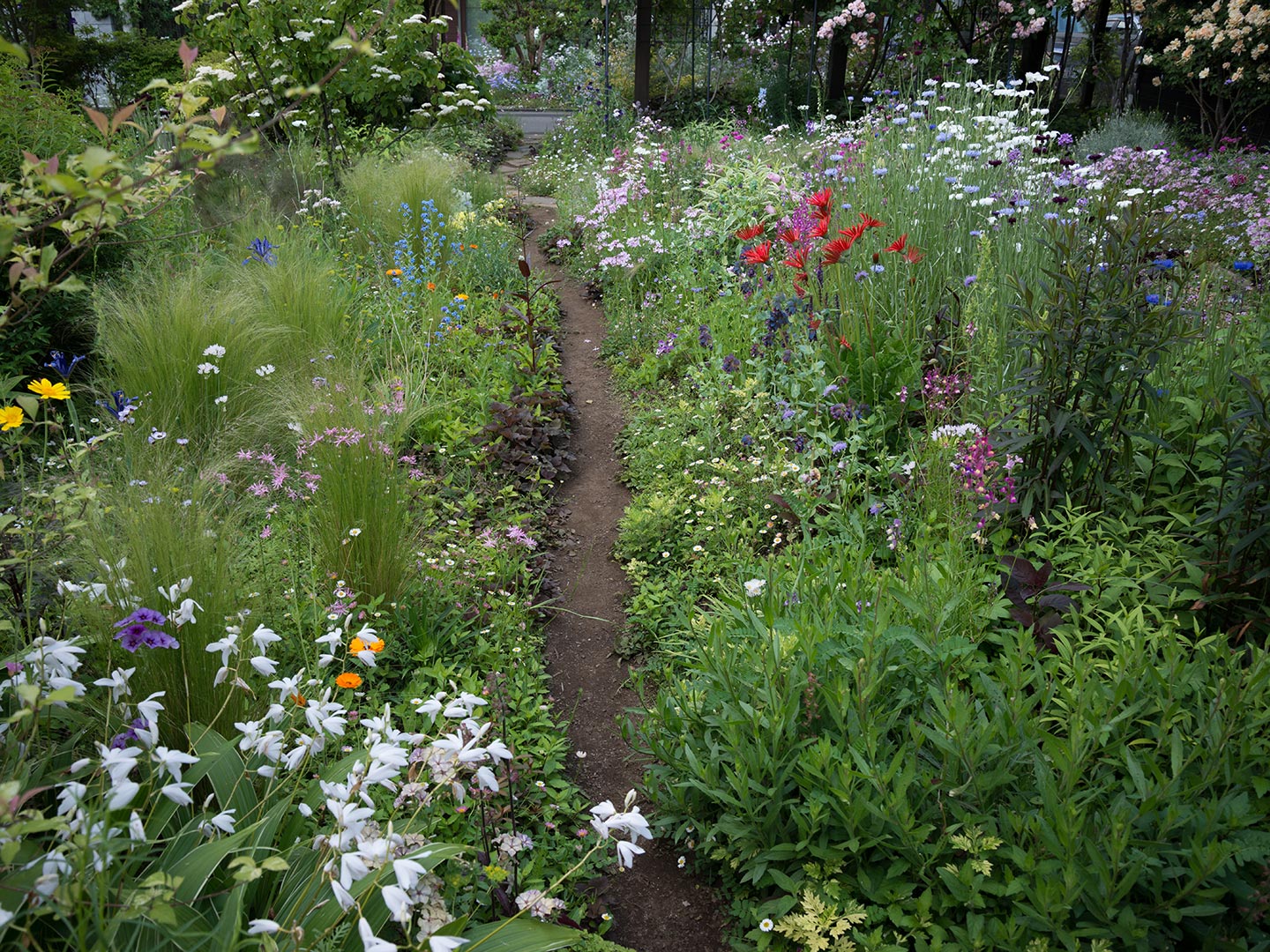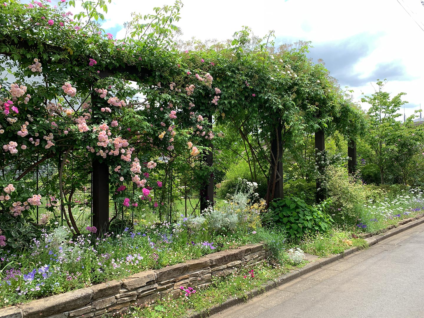 写真はご近所のフラワー庭園。先日庭園内を見せていただく機会がありたいそう感動したので、あらためて撮影依頼に伺ったところ、あいにくご本人不在とのこと。個人宅だが”超”が3つ付くほど素晴らしい。 |